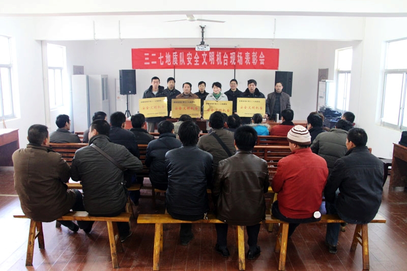 1月14日,队在庐江县龙桥镇召开了2010年第四季度安全文明机台现场表彰会。会上,对获安全文明优胜机台称号的安岩1号机(汪飞虎机台)等4个机台、获安全文明机台称号的下湾矿区姚维明97孔等6个机台进行了表彰。在表彰会上,向这些获得荣誉的机台颁发了流动奖牌和奖金。