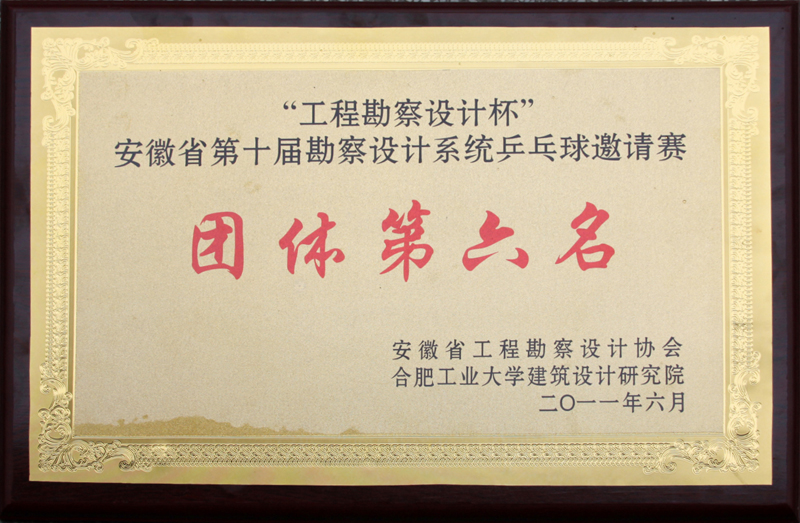 在刚刚闭幕的由安徽省工程勘察设计协会主办、合肥工业大学设计院协办的“工程勘察设计杯”安徽省勘察设计系统第十届乒乓球邀请赛上,我队工勘院代表队在强手如林的赛场上勇于拼搏,取得历史性突破,获得混合团体第六名和男子单打第六名的好成绩。