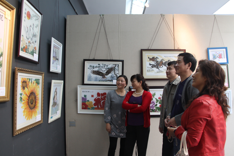 队纪委书记史俊、工会主席赵安庆、女工委主任陈琼及部分参展作品作者正在观看展览