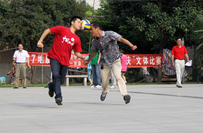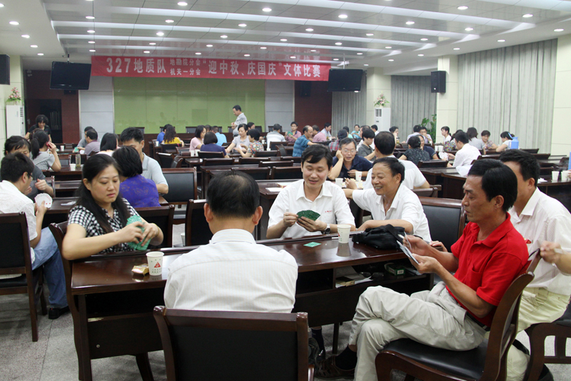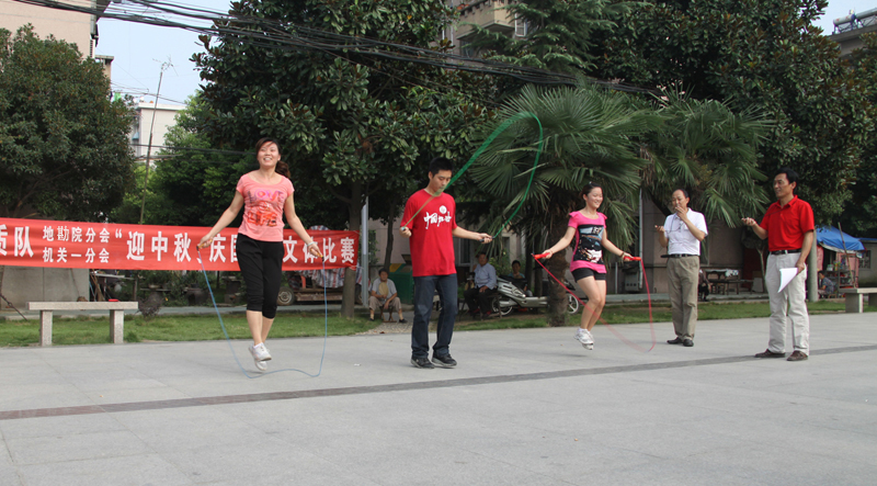 大院中心广场,地勘院分会和机关一分会共同举办的“喜迎国庆”系列文体活动吸引了很多职工家属观看。大家不断为跳绳、顶球跑的赛手们助威加油,室内象棋、扑克牌比赛也在激烈地角逐。