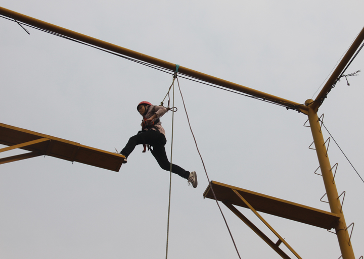 当日,训练基地,薄雾笼罩。在教练的指导下,所有参训人员被分成两个训练队,大家共同参加了高空断桥、极速六十秒、盲人方阵等训练项目。在活动过程中,两队时而合作,时而竞争,队员们克服了一个又一个困难,共同完成了团队任务。