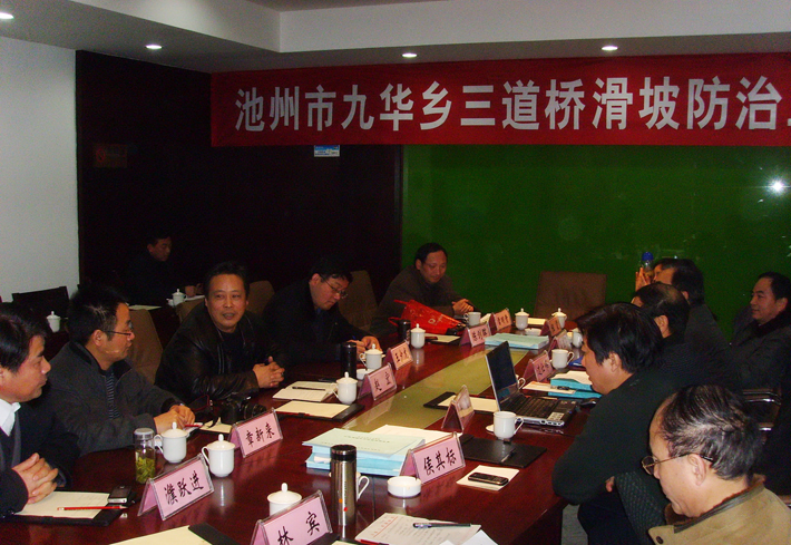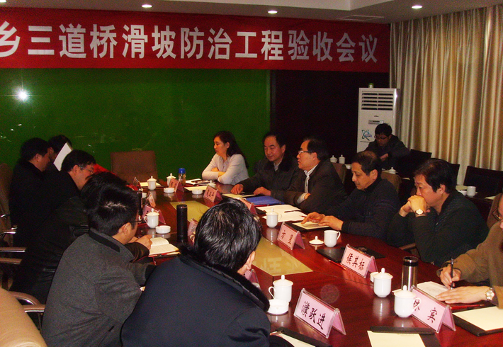2012年2月14日,我队地建公司承建的“池州市九华乡三道桥滑坡防治工程”顺利通过竣工验收评审。参加评审会议的有安徽省国土资源厅、安徽省财政厅、池州市国土局、九华山管委会、九华山国土分局的相关领导、专家组成员以及业主、设计、监理、施工单位的代表。专家组成员通过现场考核及资料查验,按相关验收规程,最终评定该项目为优良工程。