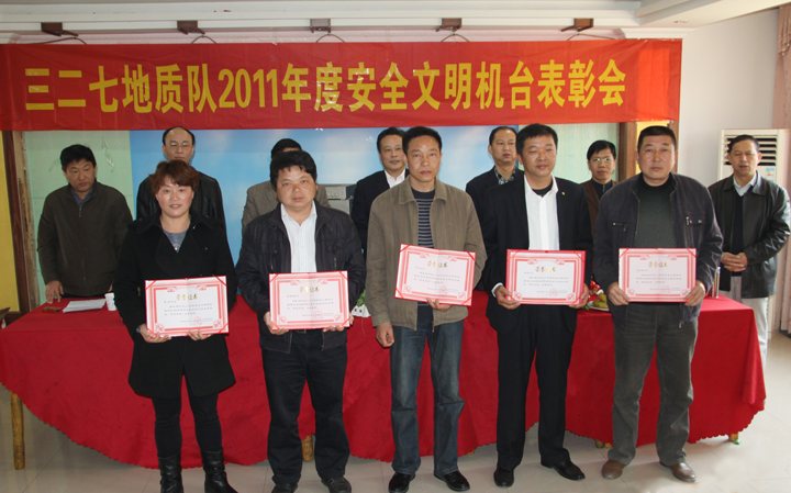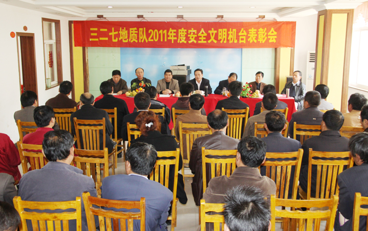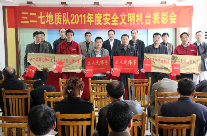 会上,党委书记王新民宣读了省地矿局关于表彰“工人先锋号”、“安全文明示范机台”的通报,同时,还宣读了327队2011年度安全文明机台的表彰决定。