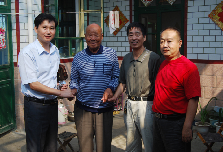 慰问小组与建国前老职工王春礼合影