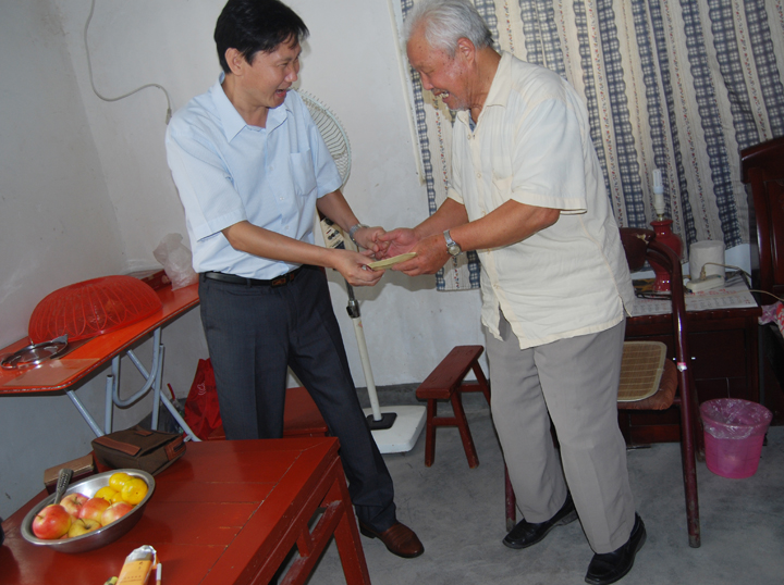 慰问小组向退休职工侯玉堂送上慰问金