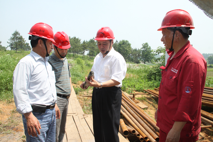 5月22日上午,赵宏队长赴我队庐枞找矿一线检查指导工作,队安全探矿科科长宫六零和钻探工程处经理周利胜陪同检查。