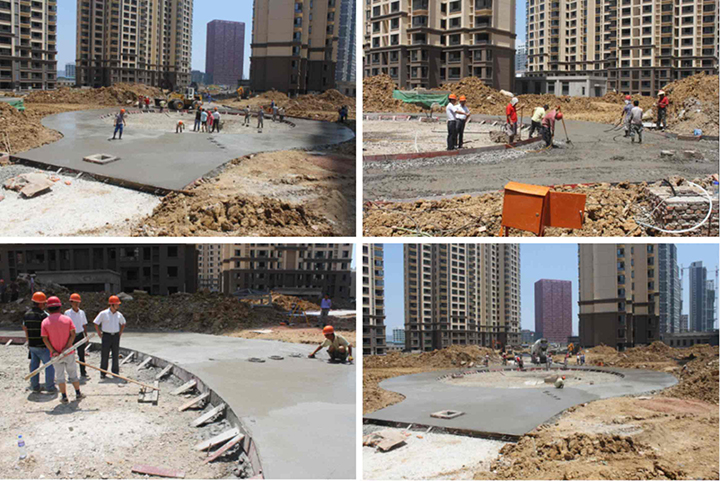 8月7日一早,项目部开始浇筑地矿家园首块混凝土路面,虽然气温接近室外工作极值,地面温度更高,项目施工人员积极调整状态,党员更是带头迎战高温,在浇筑的近三个小时时间内,公司领导、项目部的党员及其他人员无一人离开,现场指导浇筑工作,及时将圆形混凝土路面保质保量浇筑完成。浇筑完成后,大家擦拭一下汗水,休息片刻,仍继续工作。