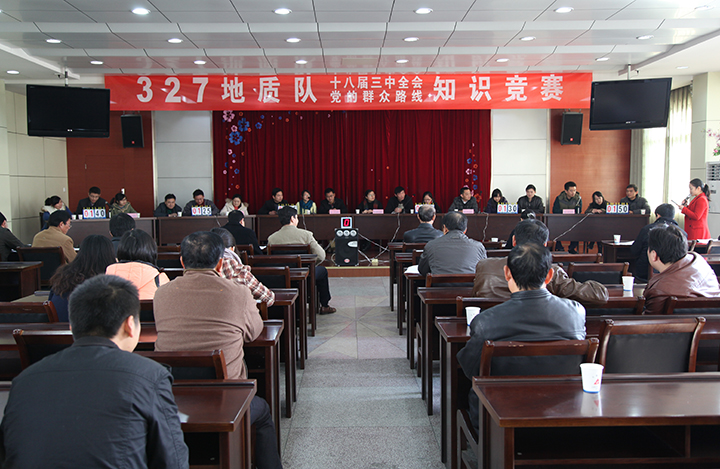为贯彻落实党的群众路线教育实践活动,大力宣传第十八届三中全会精神,丰富基层党组织和党员干部参与教育实践活动的载体,拓宽学习教育和互动交流的渠道,更好地领会教育实践活动宗旨和三中全会会议精神,11月29日上午,由队党委、团委主办的“327队党的群众路线暨十八届三中全会知识竞赛”在队会议中心隆重举行。来自6个代表队18名选手参加了比赛。队党政领导同各党总支、直属党支部书记和部分职工观看了比赛。
