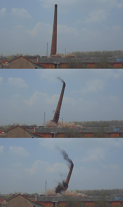 队爆破公司成功爆破拆除一建材厂废旧烟囱