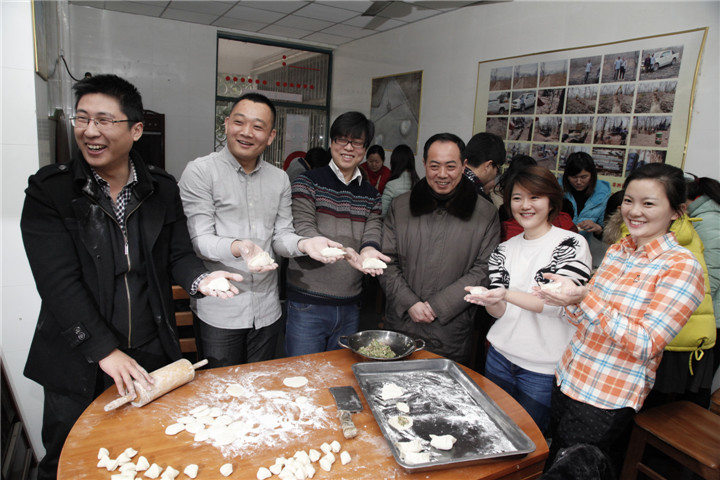 上午九时,已经提前安排好工作的青年职工们纷纷来到了队职工食堂,认真地洗手过后,大家各展所长,切菜的切菜、和面的和面、拌馅儿的拌馅儿。准备就绪后,大家三五人一组围在一个桌边,擀皮儿的、包饺子的忙活着,会包饺子的除了时不时互相点评一番还担起了“饺子速成班”的“老师”,原来不会包饺子的则在一旁有模有样的学着捏,还有调皮的“学生”把饺子捏成各种奇形怪状的,逗得大家哈哈大笑……饺子包完,队团委还请职工食堂的“专家”们给大家评了奖,大家都争相挑选自己最满意的“参评作品”展示,包得最好看的和最有创意的人还得到了奖品。饺子形状虽然不尽相同,但捏进的都是节日的好心情,捏进的都是大家团结和谐的友谊,捏进的都是对老同志的关爱,职工食堂里一时间充满了欢声笑语。