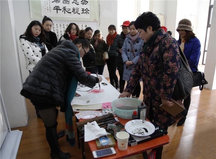 社区书画摄影爱好者现场作画