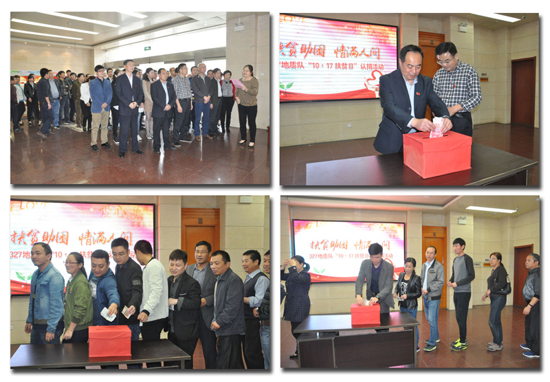 活动现场非常感人,在显示着“扶贫助困、情满人间”彩色字体和充满爱心温馨画面的大电子屏幕前,327队近200名党员职工带头捐款,纷纷将钱款投入认捐箱内。这些职工中有队领导、有普通职工,有退休的耄耋老同志、有刚刚参加工作的年轻人,有刚刚回到队上办事的野外一线职工、有机关科室管理干部,他们发扬扶贫济困、崇德向善的传统美德和乐善好施、助人为乐的时代新风。他们为贫困地区和贫困群众伸出援助之手,为做好新形势下扶贫开发工作,推动贫困地区和贫困群众加快脱贫致富奔小康的步伐献出一份地质人的力量。