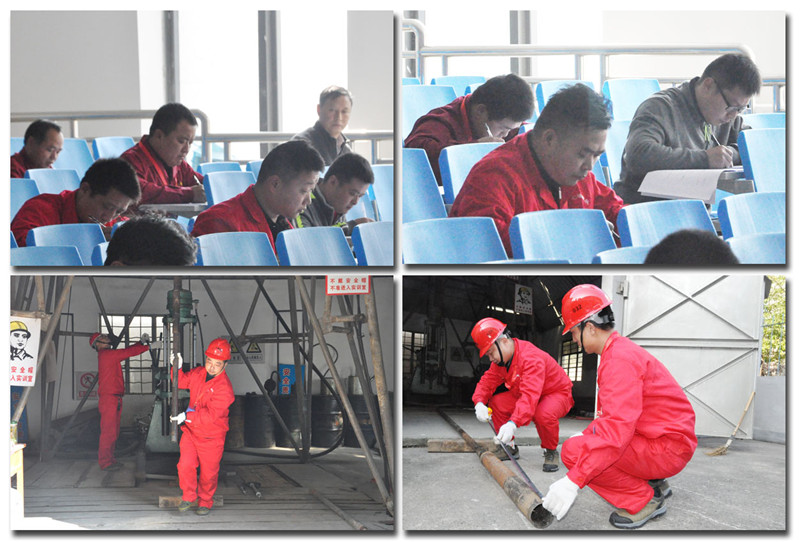 我队队员在理论考试和孔内事故处理现场