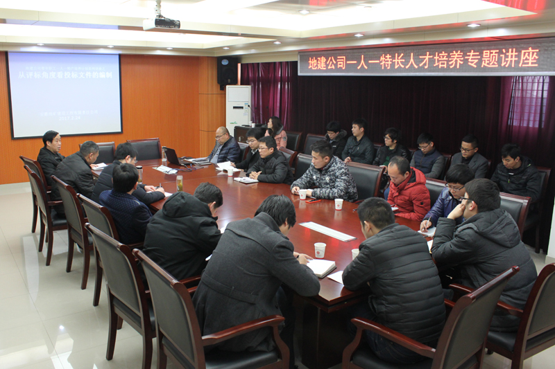 2月24日下午,队地建公司在四楼会议室举办青年职工一人一特长人才培养专题讲座。公司领导、部分职能部门负责人、公司投标文件编制人员以及参与人才培养活动的青年职工共计20余人参加了会议。