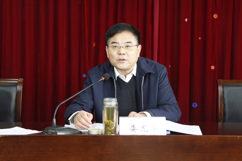 队长娄尤华在会上讲话