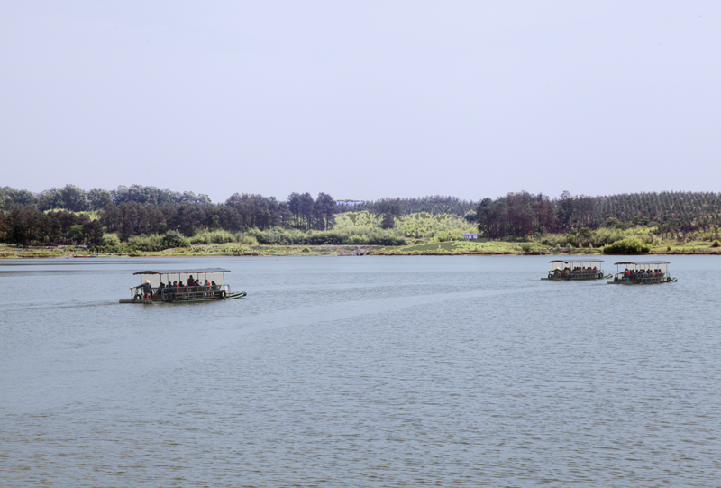 岱山湖景区内花红柳绿、春意盎然,老同志们登船或乘坐竹筏赴两处景岛,三五成群地坐在九曲长廊中谈天说地,在亭台楼榭、林荫小路下笑语欢歌,花丛中、湖水边还不时出现喜欢摄影的老同志身影。
