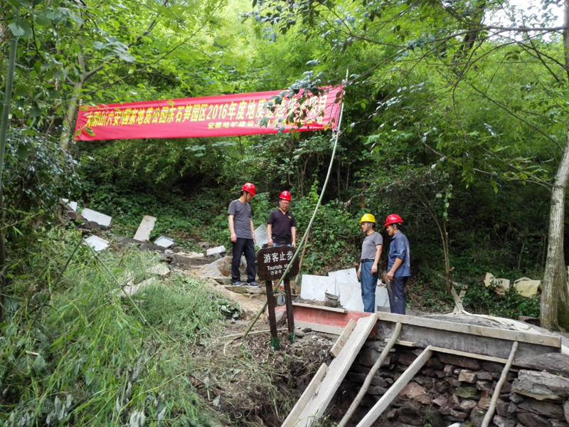 在2016年度地质遗迹保护项目1标段大别山(六安)国家地质公园东石笋园区以及霍山县太阳乡杜岗岭、杨树隆地质灾害治理工程两个项目现场,公司检查组认真听取了项目现场负责人的汇报,并对施工现场进行了仔细的安全生产检查,及时指出现场安全隐患,并给出了整改意见。检查组要求施工项目组必须尽快落实整改责任人、整改时间和整改检查人,确保安全生产无事故。