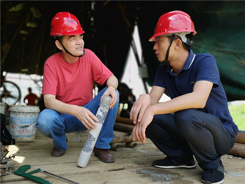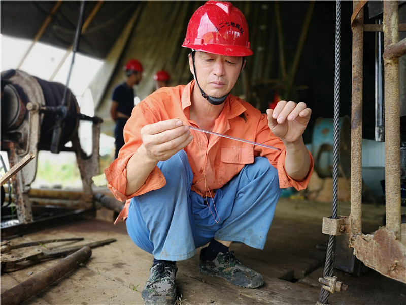 工作人员在测试井液温度