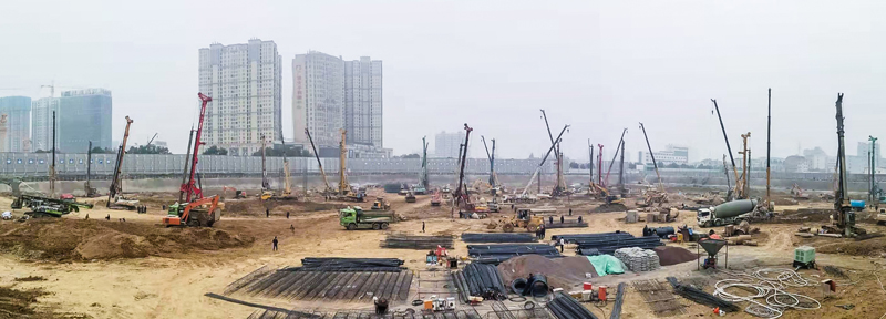 截止发稿日,该项目部已完成商业地块酒店、公寓2栋塔楼256根灌注桩和商业及地库450根桩基施工任务。目前该项目正处于紧张施工中。