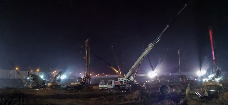 根据舒城县政府要求,舒城万达广场将于2021年7月1日正式开业,施工工期非常紧。我队岩土公司承建的舒城万达A地块住宅预应力管桩工程已于11月3日如期竣工,合同造价320万元。4日,商业地块桩基工程接着开工,岩土公司为满足甲方工期要求,陆续投入了15台旋挖桩机进行施工,项目部全体员工克服施工难度大、施工程序复杂、施工机械多、与土方支护单位交叉作业等等困难,日夜不间断工作,以确保项目施工有序进行。
