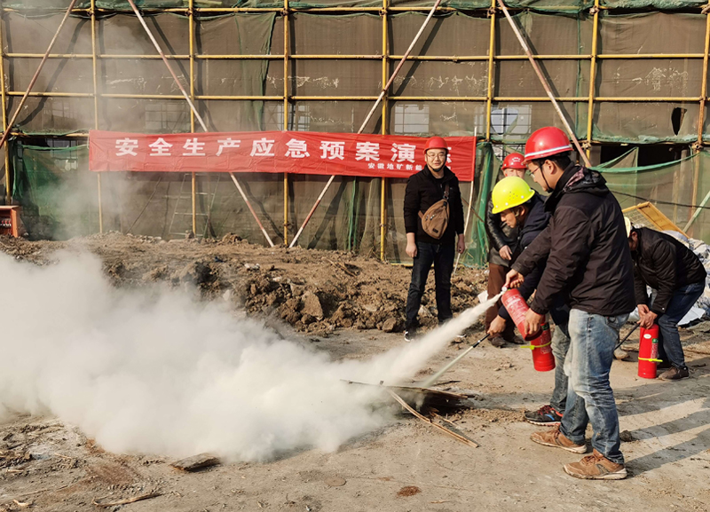 12月13日,我队新能源公司在淮北市规划展示馆地源热泵工程项目现场开展火灾应急预案演练。项目部管理人员以及现场工人集中学习施工现场突发火灾时应急预案以及不同灭火器使用方法。