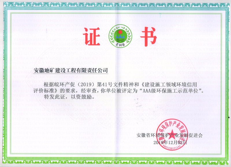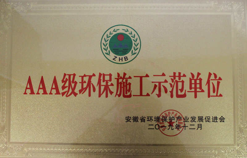 近日,队地建公司再次被安徽省环境保护产业发展促进会评为“AAA级环保施工示范单位”。