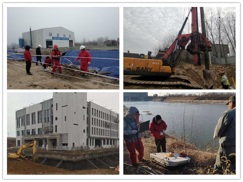 在凤台县淮河化工厂和淮峡化工厂地块修复与风险管控项目,物探所的职工们正在进行工程地球物理勘查。他们需要结合使用多频电磁探测法、高密度电法、探地雷达、瞬变电磁法等多种物探方法,查明调查区内10米深度范围内的危废储罐填埋物及化工废渣的分布,才能为后期工程施工提供科学依据。